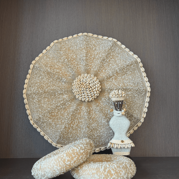 Zorgvuldig en met de hand gemaakt in Kameroen: dit unieke Beaded Shield – Bianca (50cm) is ontworpen door Bianca (@huisje.in.parkzijde). Net zoals de 30cm– en 40cm variant is ook dit Beaded Shield met veel zorg en aandacht samengesteld en geproduceerd. De glaskraaltjes in wit- en ivoortinten zorgen voor een prachtige parelmoer-effect. Met je aankoop ondersteunen we de vaklieden in Kameroen in het verbeteren van hun werk- en leefomstandigheden.