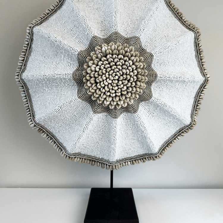 Dit prachtige Beaded Shield – Eva is het resultaat van een intensieve samenwerking met één van onze Instagram-volgers, en het resultaat mag er zijn! Volledig handgemaakt in Kameroen. Wees er snel bij om jouw unieke exemplaar te bemachtigen.