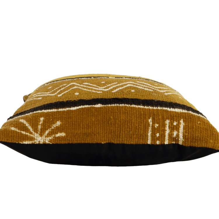 Ons ‘Zigzag Cuivre et Or’ Bògòlanfini kussen is een tastbare expressie van de rijke Afrikaanse cultuur, een kunstwerk dat net zo comfortabel als fascinerend is. Dit handgemaakte kussen met zijn zigzagstrepen is meer dan een eenvoudig woonaccessoire, het is een verhaal van traditie en vakmanschap dat elke ruimte levendiger maakt.