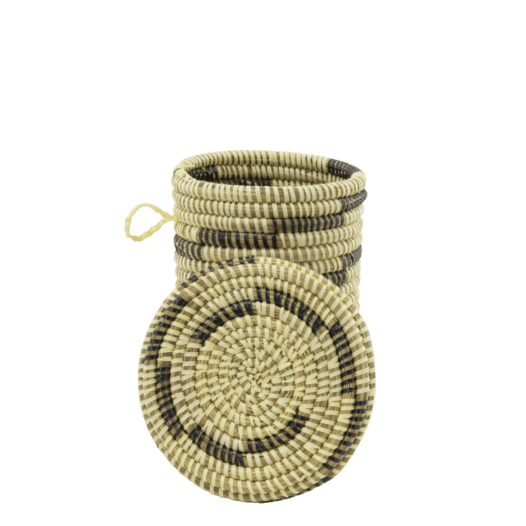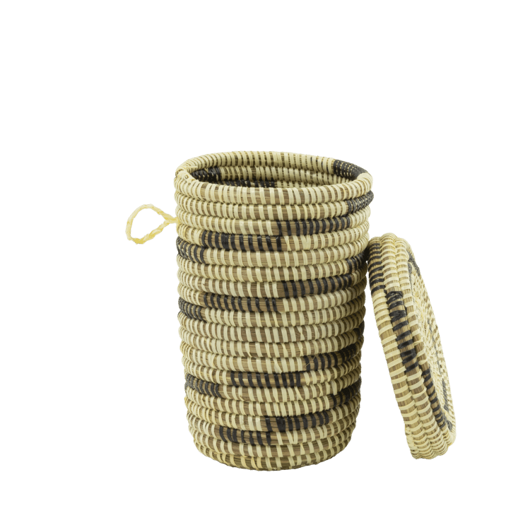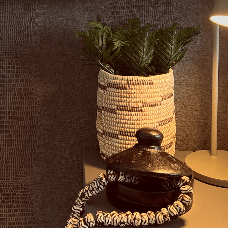 Ontdek onze prachtige handgemaakte Hoge Smalle Mand – Trapeze met een slank ontwerp – een decoratief element dat uw huis verrijkt! Elk stuk is vakkundig gemaakt door getalenteerde ambachtslieden uit Senegal, waardoor elke mand een unieke en speciale uitstraling heeft.