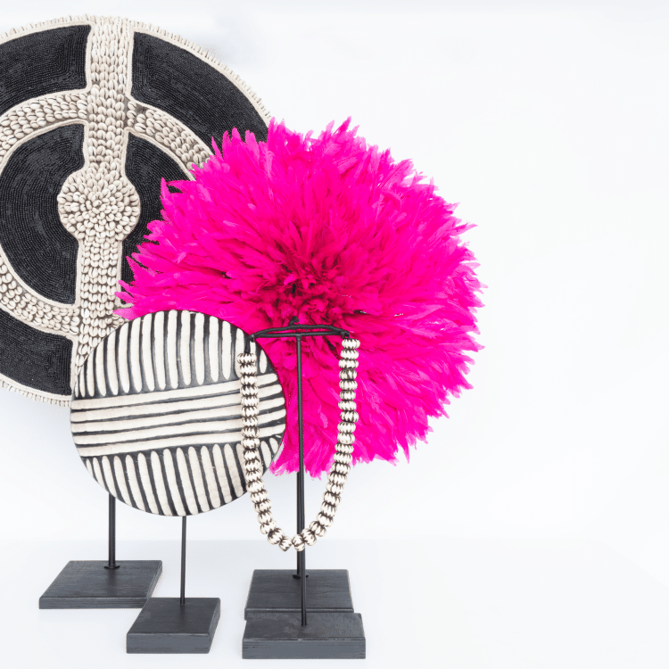 De Juju Pink symboliseert liefde, zachtheid en sereniteit met zijn subtiele roze kleur. Dit decorstuk voegt niet alleen een charmante touch toe aan je interieur, maar het brengt ook een stukje van de rijke Kameroense cultuur en geschiedenis in je huis. Het is een betoverend stuk dat een serene, rustgevende sfeer in je ruimte creëert, waar je het ook kiest te plaatsen.