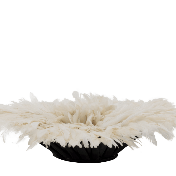 Versier je interieur met de Juju Wit, een prachtig handgemaakt stuk dat verkrijgbaar is in verschillende formaten. De Juju Wit, een traditioneel Kameroens kunstwerk, straalt een zuivere eenvoud uit met zijn monochrome witte kleurenschema, wat een onmiskenbare visuele aantrekkingskracht geeft.