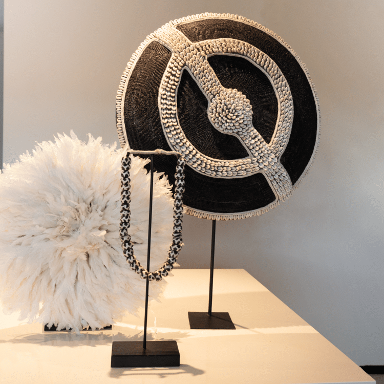 De White Juju is meer dan alleen een decoratief object. Het is een statement stuk dat rijk is aan cultuur en geschiedenis, en dat je interieur een uniek karakter geeft. Het heldere witte kleurenschema voegt een vleugje frisheid en rust toe aan je ruimte, terwijl het ronde silhouet een interessante visuele dynamiek creëert.
