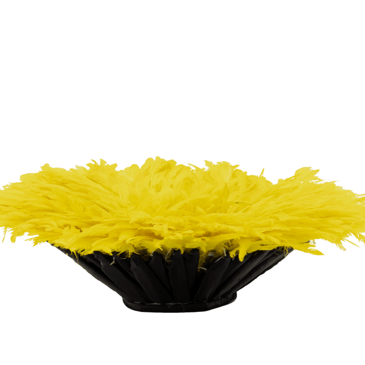 De Juju straalt warmte, positiviteit en vreugde uit met zijn opvallende gele kleur. Dit decorstuk voegt niet alleen een levendige toets toe aan je interieur, maar brengt ook een stukje van de rijke Kameroense cultuur en geschiedenis in je huis. Het is een boeiend stuk dat een uitnodigende, vrolijke sfeer in je ruimte creëert, waar je ook kiest het te plaatsen.