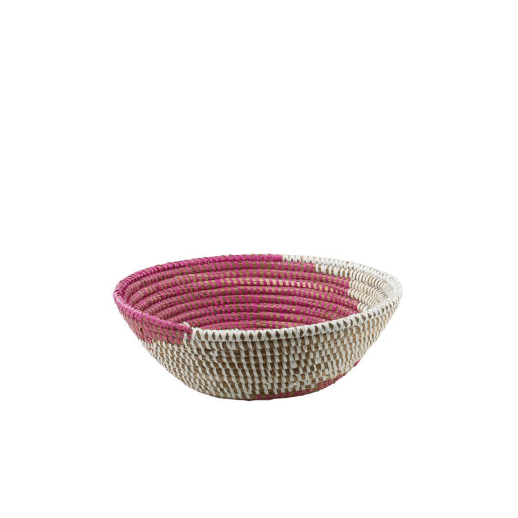 Hoewel ze perfect is voor het bewaren van kleine spulletjes, functioneert ze ook uitstekend als puur decoratief element. Wat vooral opvalt, is het contrast. Het natuurlijke riet aan de buitenkant harmonieert prachtig met de levendige roze tint aan de binnenkant. In welke ruimte u haar ook plaatst, deze schaal trekt gegarandeerd de aandacht en wordt een gespreksonderwerp. Een stukje Senegalese kunst, binnen handbereik.
