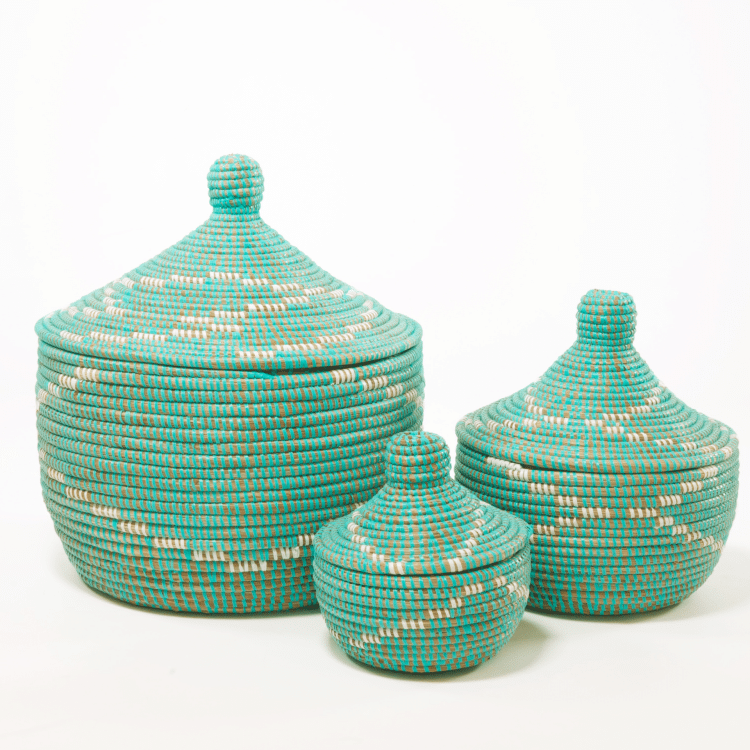 De Kleine Tajine Mand – Turquoise is een handgemaakte mand uit Senegal met een prachtige tajine-vorm en een frisse turquoise kleur. Dit S-formaat is perfect voor het opbergen van kleine, dagelijkse items en voegt een kleurrijk accent toe aan je interieur. Praktisch én decoratief, deze mand is ideaal voor wie houdt van stijl met een verhaal.