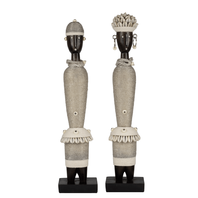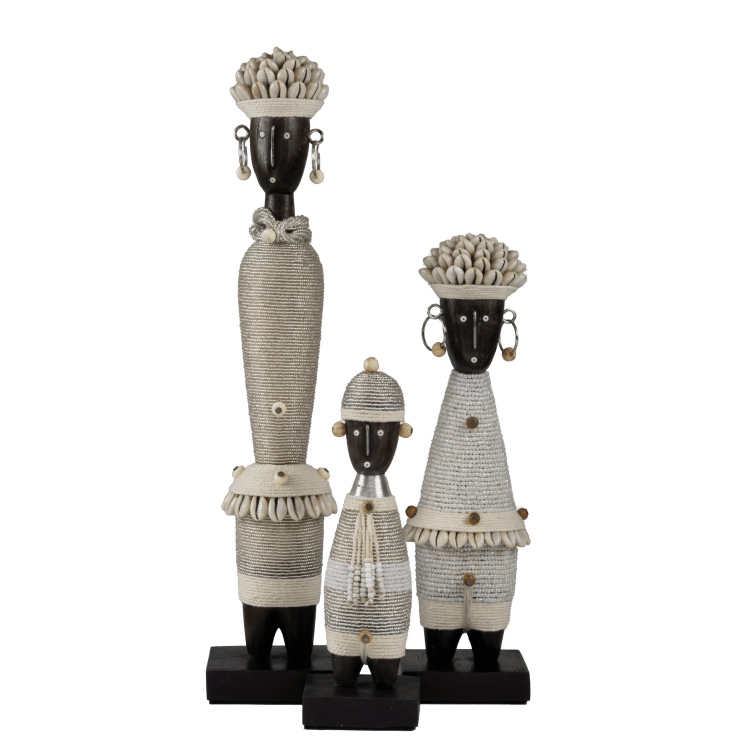 Unieke Namji Doll – H1, rijkelijk gedecoreerd en met neutrale tinten die perfect passen in elk interieur. Geleverd op een zwart platform.