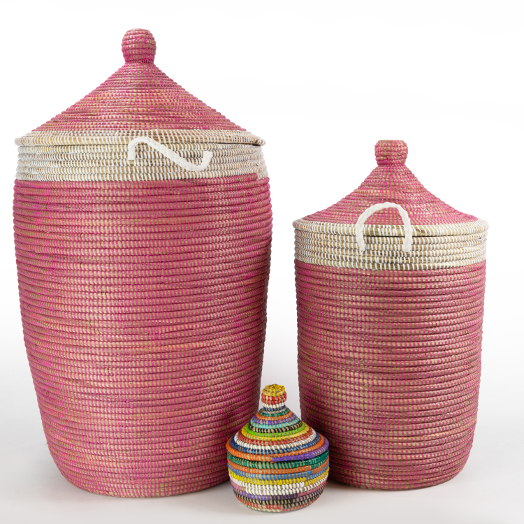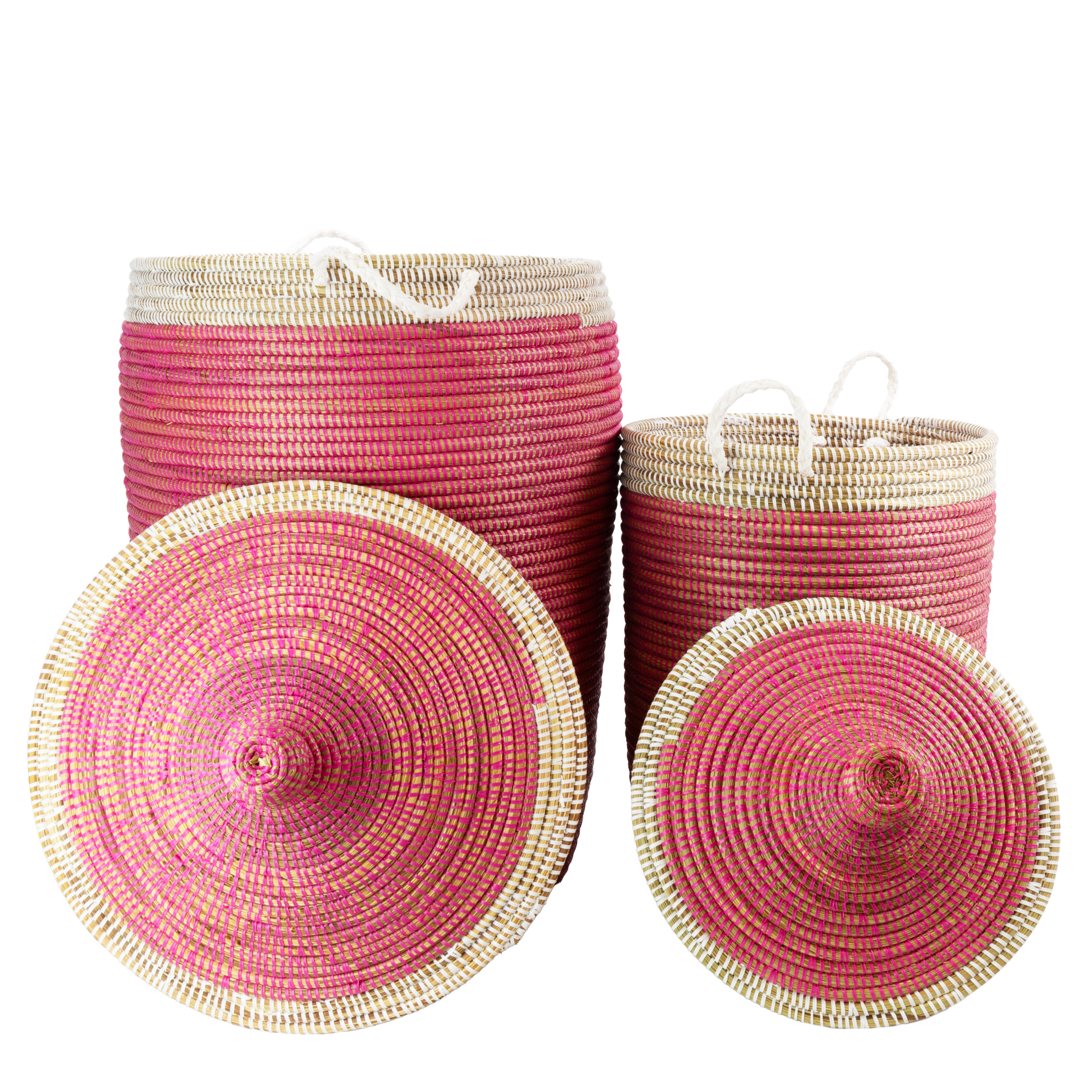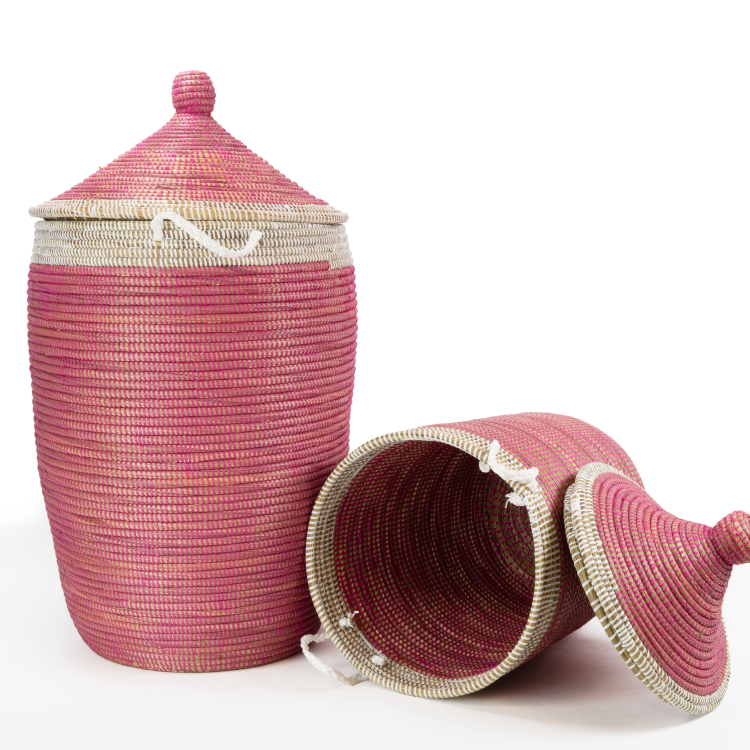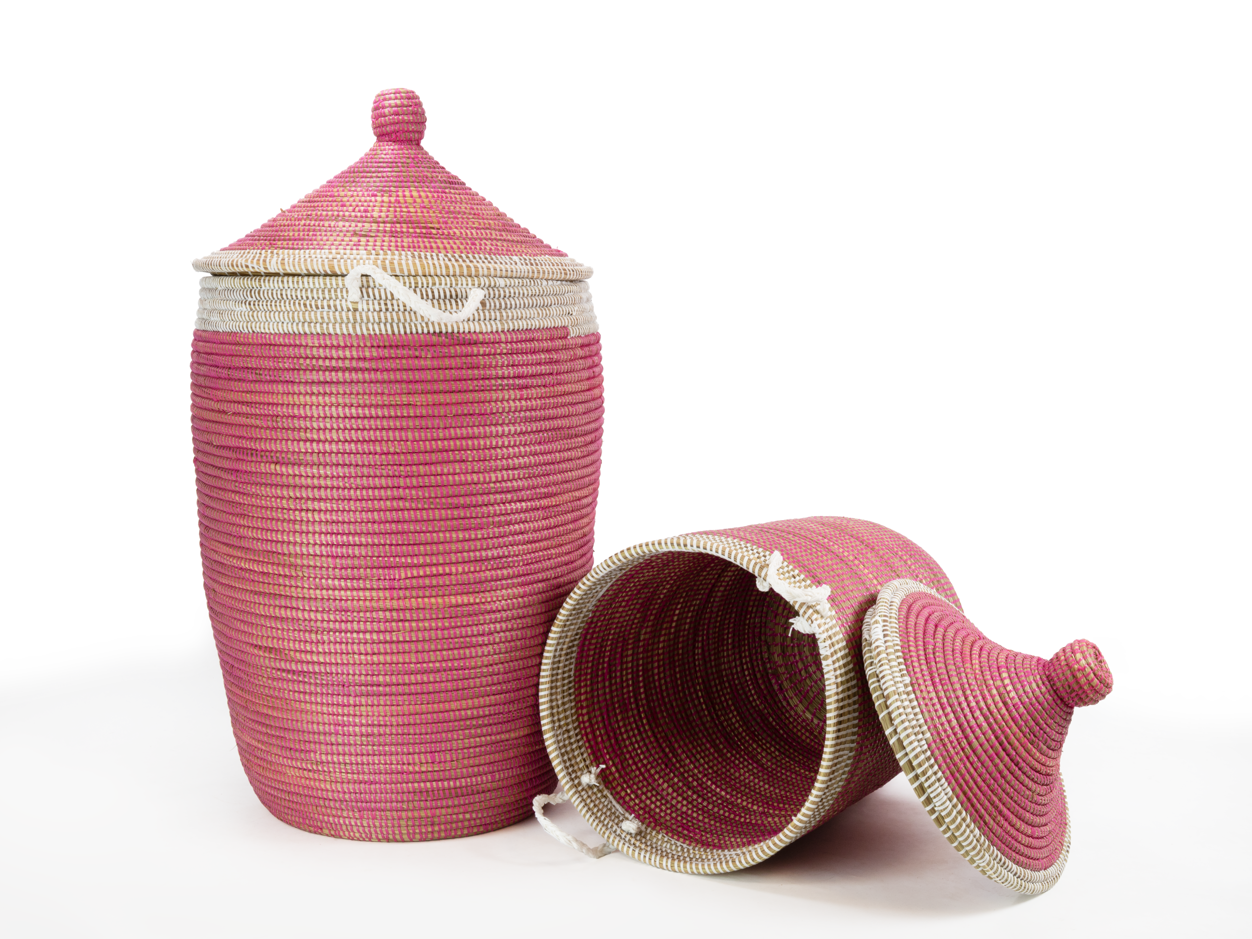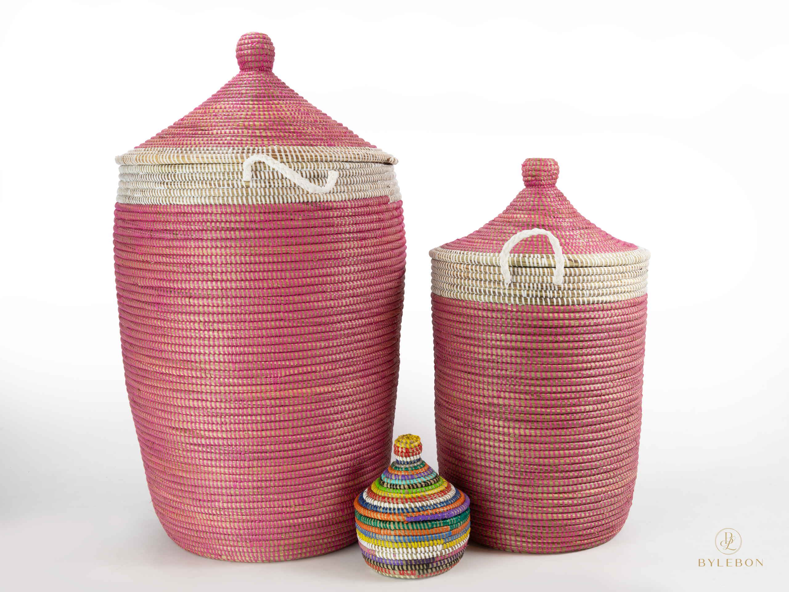 Deze set Set Tajine Manden – Roze met witte rand geeft een zachte, frisse uitstraling aan je slaap- of badkamer. Ideaal als opbergmand voor handdoeken, kleding of als decoratieve wasmand. De twee stevige manden zijn met de hand gevlochten (van nature goed ventilerend).