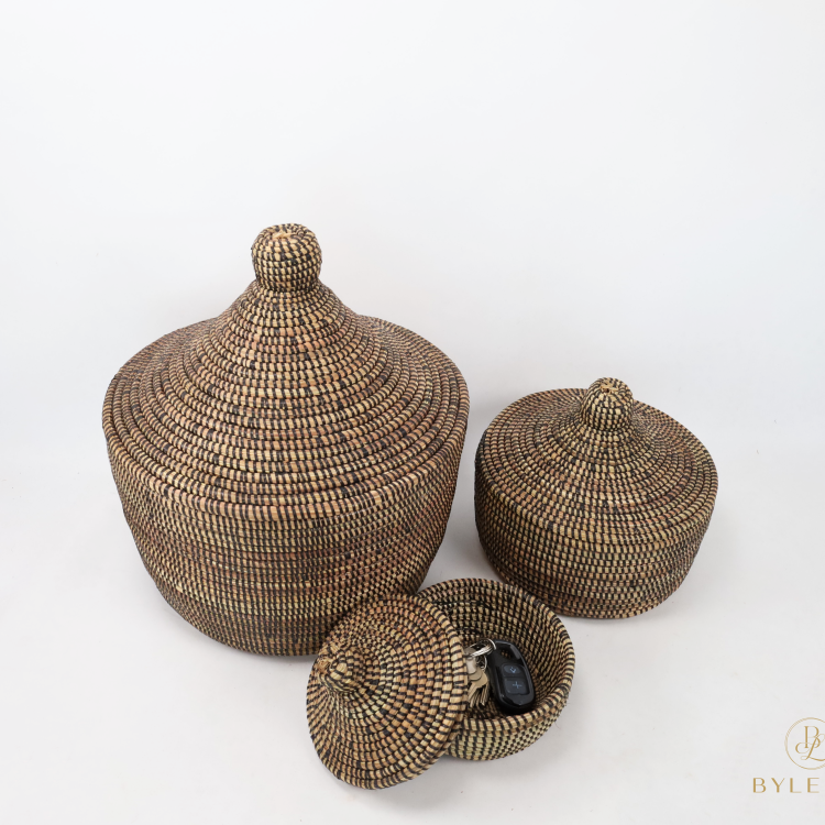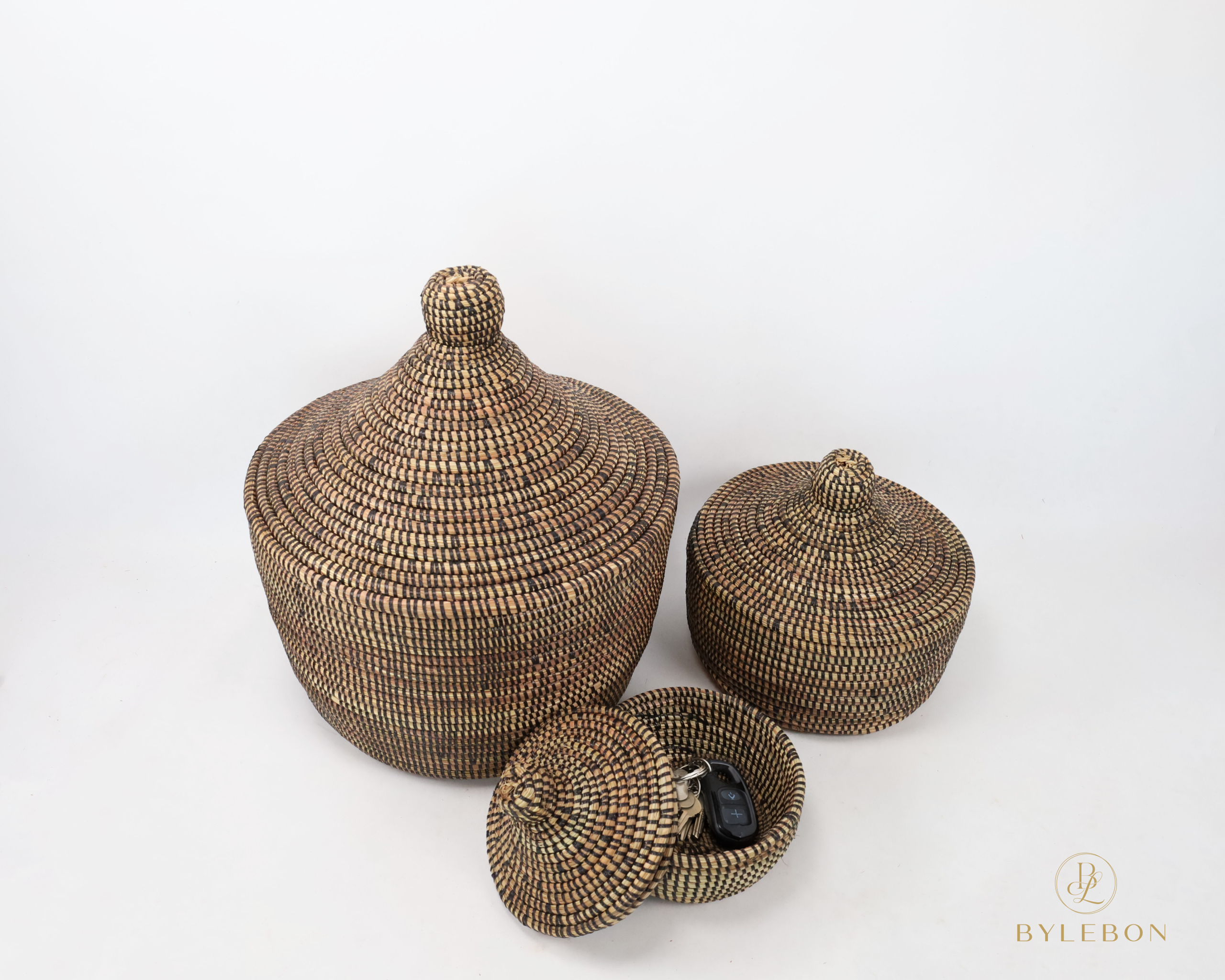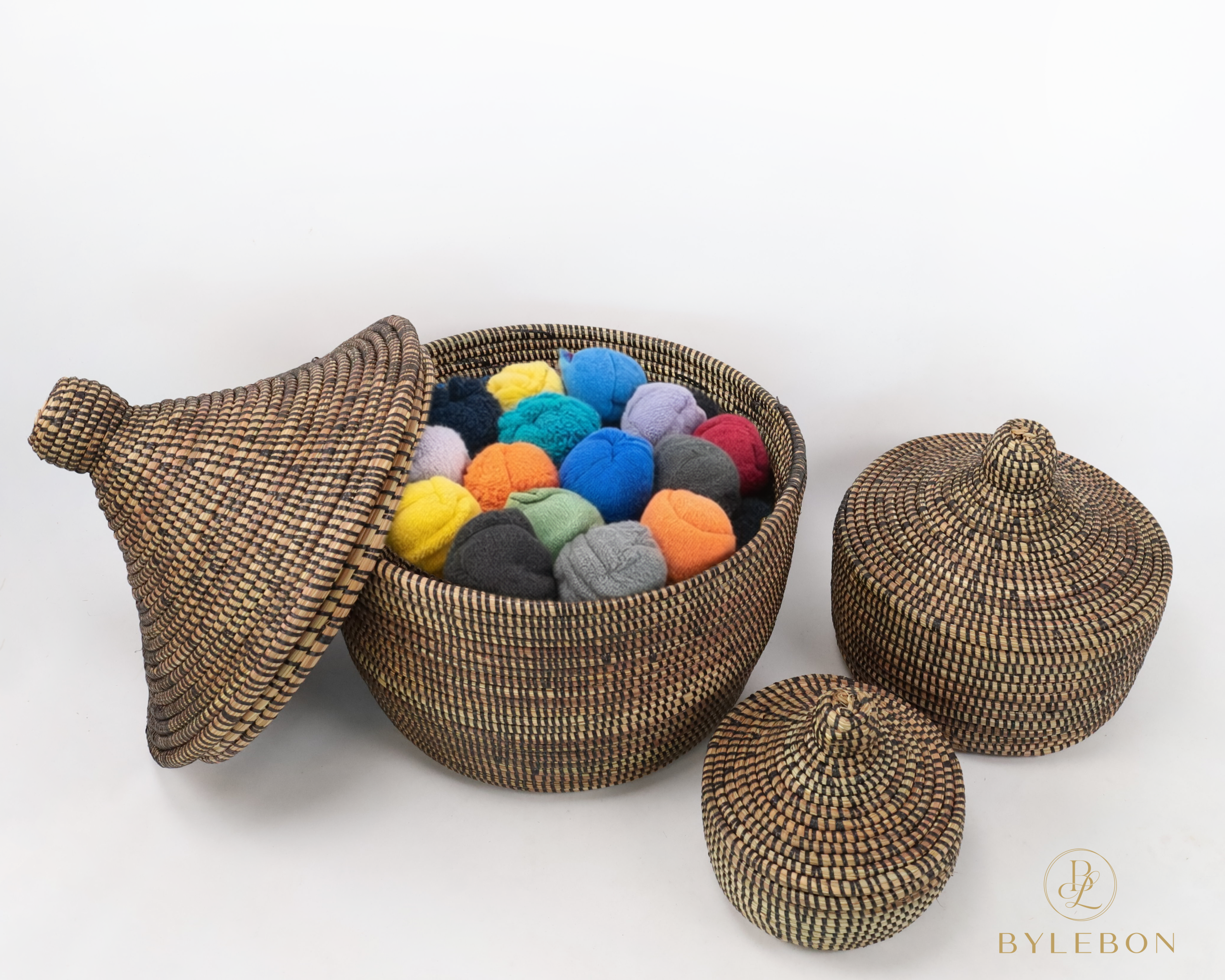 Deze set van 3 Tajine Mandjes – Bruin bestaat uit zorgvuldig handgemaakte opbergmanden, gevlochten volgens traditionele technieken. De kenmerkende tajinevorm in combinatie met de natuurlijke bruine kleur geeft de mandjes een warme, tijdloze uitstraling die past in zowel een modern als landelijk interieur.
