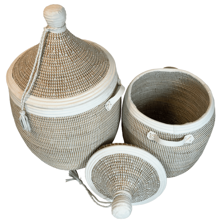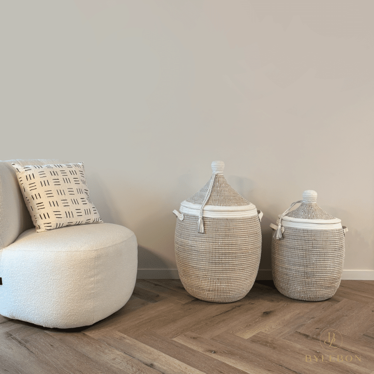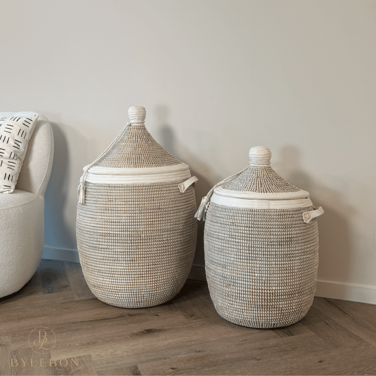 Zet ze in de woonkamer als tijdschriftenmand, gebruik ze in de slaapkamer voor wasgoed of plaats ze in de kinderkamer voor knuffels en speeltjes. Deze Set Witte Manden Met Leder is een van onze meest luxueuze mandensets.