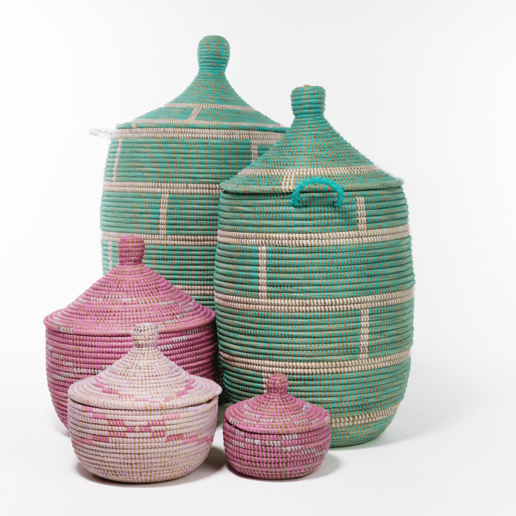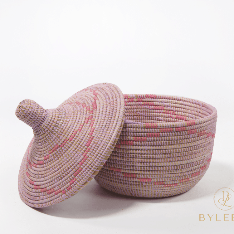 De Tajine Mand – Lila is een handgemaakte mand uit Senegal, perfect voor kleine opbergoplossingen. Met een unieke tajine-vorm en een opvallende combinatie van lila/roze kleuren en een subtiel diagonaal rood patroon, is deze mand niet alleen functioneel, maar ook een blikvanger in je interieur.