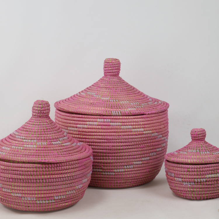 De mand is handgemaakt van natuurlijke materialen (lichtgewicht maar stevig) en geschikt voor het opbergen van speelgoed, plaids, kussens of andere losse items. Dankzij de deksel blijft de inhoud netjes uit het zicht, terwijl de roze kleur zorgt voor een warm en speels accent in de woon- of kinderkamer.
