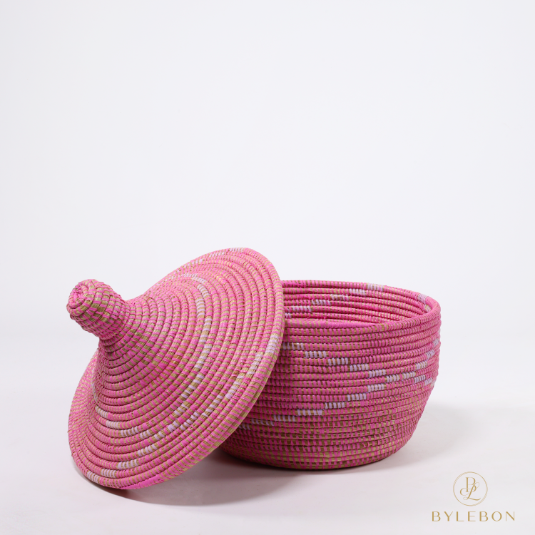 Deze Tajine Mand – Roze is een middelgroot model met een zachte, vrouwelijke uitstraling. De karakteristieke tajinevorm wordt versterkt door een verfijnd kruispatroon in een lichtere tint, wat de mand net extra diepte en detail geeft zonder druk te ogen. Met een diameter van circa 36 cm en een hoogte van circa 41 cm is dit formaat ideaal voor kleinere ruimtes.