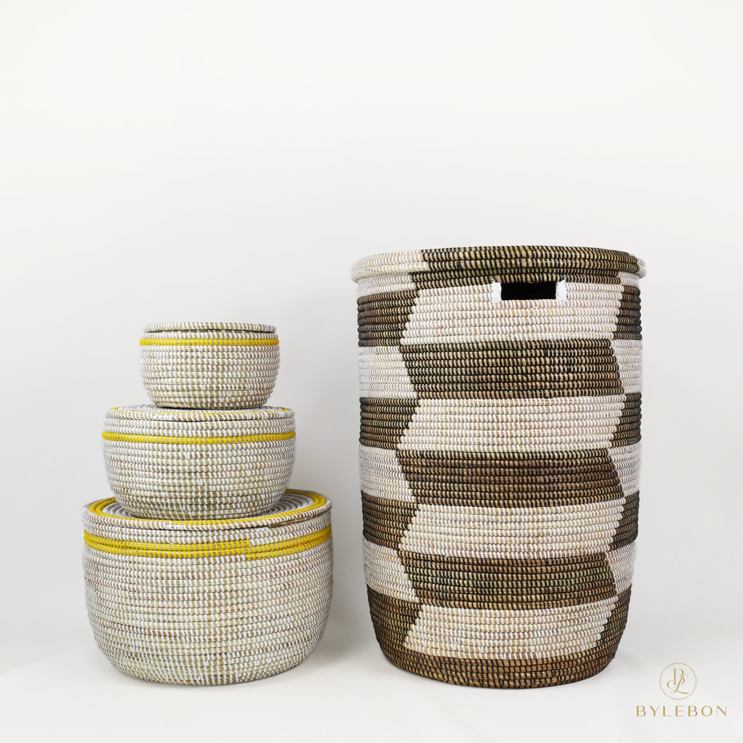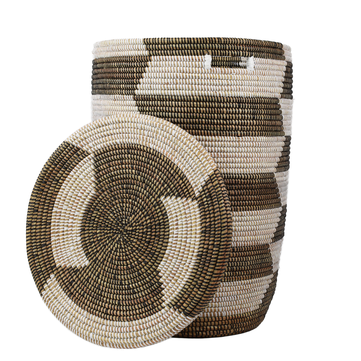 De Wasmand met deksel – Trapeze wit/zwart heeft een krachtige, grafische uitstraling door het contrasterende trapeze-patroon in zwart en wit. De mand is ruim van formaat en geschikt voor het opbergen van wasgoed, handdoeken of beddengoed. Dankzij de platte deksel blijft de inhoud netjes uit het zicht en oogt de ruimte opgeruimd.